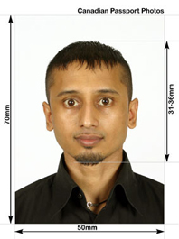 The Canadian passport photo requirements strictly mention the procedure for reproduction of the photographs. Two identical colored or black and white photographs produced from the same film or electronic file are required. The maximum size of the photographs is 50 mm x 70 mm on a high quality photographic paper. The photos produced on heavy weight papers are unacceptable. The photograph must be taken by a professional photographer with the stamp revealing his name, business address, and date of the photograph must to be provided at the back of one photograph. Stick-on-labels are not allowed and ample space must be allowed for the name of the applicant, the signature of a guarantor and his declaration below the photographer’s address. Glasses and their frame should not disguise the eyes of the applicant. A neutral expression with no teeth showing with normal skin color has to be maintained. The image of the subject has to be in center of the photo with no shadow on the background and face. The length from the chin to the crown of the head should be 31 mm to 36 mm. The background color required has to be white or light color. No head coverings are allowed unless for the religious cause.